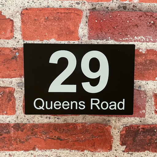 Features Two-panel design with black back panel and clear front panel Personalised with your house number and street name Size: 200mm x 140mm M...