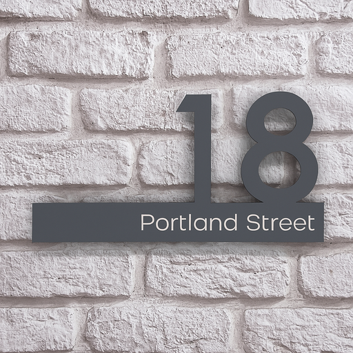 Zenith House Number Sign With Printed Street Name Door Name Plaque - Grey