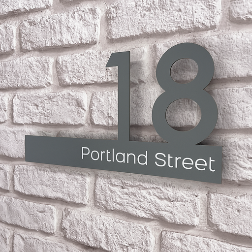 Moda House Number Signs Floating Style Door Name Plaque - Grey